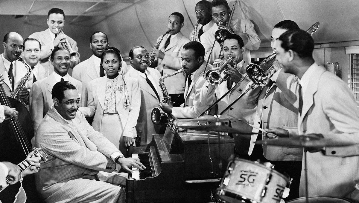 April 29th will mark 127 years since the birth of Edward Kennedy “Duke” Ellington, probably the United States’ foremost composer of the twentieth century. His greatest compositions were crafted to fit on one side of a 78rpm shellac disc, whole worlds spanning a mere three or so minutes. Duke Ellington’s uniquely American brilliance is embodied in his ability to find very good musicians, keep them in his band for decades, learning to write parts that sound as though they flowed naturally and spontaneously from the musicians themselves, elevating them to something great—a universal artistic wholeness in American vernacular. Ellington’s mastery lay in his being a hub around which many spokes turned the wheel—elegant motions where no one part was independent of the others. Let’s hope, for the prospect of actual democracy, that this is a transferable skill.